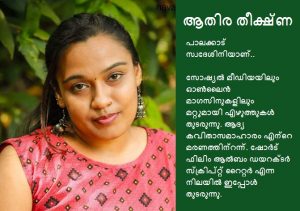 ” അവര്, പെണ്ണുകാണാൻ വരും അല്ലേ? നീ ഭാഗ്യവതിയാണ്. സ്നേഹിച്ച ആളേ തന്നെ വിവാഹം ചെയ്യുവാൻ കഴിഞ്ഞല്ലോ. ങ്ഹാ “.