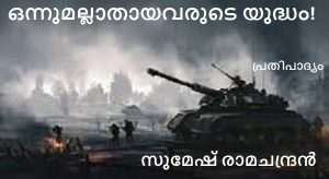 അതുതന്നെയാകണം രാജ്യങ്ങളെ യുദ്ധത്തിലെത്തിക്കാൻ ബദ്ധപ്പെടുന്ന തീവ്രവാദികളുടെ ആവശ്യവും. തകർക്കേണ്ടത് അവരെയാണ്, രാജ്യങ്ങളെയല്ല. ജീവിക്കാൻ പണിപ്പെടുന്ന സാധാരണ മനുഷ്യരെയും, ജീവിച്ചു തുടങ്ങാത്ത കുഞ്ഞുങ്ങളെയുമല്ല. പക്ഷെ യുദ്ധം തുടങ്ങിയാൽപ്പിന്നെ ഒന്നും നോട്ടമില്ലല്ലോ! പലസ്തീൻ-ഇസ്രായേൽ യുദ്ധം തന്നെ വലിയ ഉദാഹരണം. തുടങ്ങാതിരിക്കാൻ കഴിഞ്ഞാൽ അത്രയും നന്ന്.