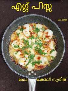 ഒരു പാനിൽ എണ്ണയൊഴിച്ച് അതു ചൂടാകുമ്പോൾ അതിലേയ്ക്ക് അരിഞ്ഞുവച്ചിരിക്കുന്ന ക്യാപ്സിക്കവും സവാളയും ഇട്ടു വരട്ടുക. അതിലേയ്ക്ക് ഗോതമ്പുപൊടിയും, പച്ചമുട്ടയും,പാലും, ഉപ്പും, മുളകും ചേർത്തു കുഴച്ച മിശ്രിതം ഒഴിച്ച ശേഷം, രണ്ടായി മുറിച്ച മുട്ടകൾ ക്രമമായി കമിഴ്ത്തി വയ്ക്കുക. അതിനു മുകളിൽ ചീകി വച്ചിരിക്കുന്ന ചീസ് വിതറുക. ശേഷം പാൻ അടച്ച് 8 മുതൽ 10 മിനിട്ട് ചെറിയ തീയിൽ വേവിക്കുക. രുചികരവും ആരോഗ്യകരവുമായ എഗ്ഗ് പിസ്സ റെഡി.